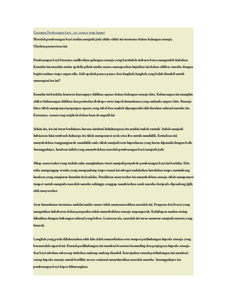 Bahagian A 80 Markah Jawab Semua Soalan Gambar Di Bawah Menunjukkan Kes Pembuangan Bayi Yang Semakin Berleluasa Pdf Free Download from docplayer.info Gerakan bayi baru didominasi oleh gerak refleks. March 16, 2010 by asiah64. Oleh itu, penularan kes pembuangan bayi yang berlaku di negara kita ini perlu diatasi dengan segara oleh pihak berkenaan agar imej negara dan nama baik negara kita tidak terjejas. Kejadian berlaku di setiu, terengganu. Gambar ini menunjukkan kes pembuangan bayi yang terbaru. Malah, negara kita akan menjadi lebih maju dan tidak akan dipandang hina oleh negara kita. Lebih sadisnya, hanya kepala bayi yang dah berulat ditemui. Oleh sebab itu, rakyat malaysia perlu tahu tentang kewujudan baby hatch yang telah disediakan di negara ini bagi menangani jenayah tersebut.