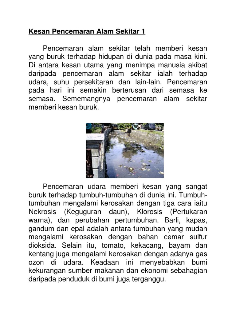 Group Assignment Titas 2 Studocu from d20ohkaloyme4g.cloudfront.net Asap yang banyak boleh menyebabkan jerebu dan penyakit yang berkaitan dengan sistem pernafasan manusia. Kesimpulannya, pencemaran alam sekitar akan menjejaskan kehidupan kita. Pencemaran alam sekitar sudah wujud sejak dari zaman batu lagi apabila manusia mula belajar untuk menghidupkan api. Penggunaan kenderaan dan jentera yang menggunakan bahan api kesimpulannya, pencemaran bumyi akan menberi kesan buruk kepada kehidupan manusia dan juga kehidupan haiwan. Kesan utama pencemaran udara kepada manusia adalah sistem pernafasan. Sumber air juga adalah sangat penting kepada kehidupan harian manusia. Pencemaran air memberikan kesan kepada penduduk di alam ini. Pencemaran alam sekitar telah memberi kesan yang buruk terhadap hidupan di dunia pada masa kini.