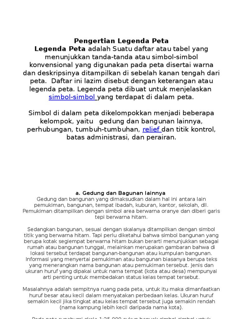 Simbol Bangunan Dalam Peta / Hijau menunjukkan daerah dataran rendahc.. Dalam peta skala menjadi komponen yang tidak kalah penting karena semua peta pada dasarnya merupakan hasil dari pengecilan dari wilayah permukaan bumi. Dalam penggambaran peta, penempatan simbol ini diusahakan benar lokasinya. Maksudnya seperti berburu serta memungut/memanfaatkan hasil hutan tersebut, seperti tanaman obat, bahan bahan makanan, dan kayu bakar maupun bahan bangunan. Dalam penggambarannya simbol ditempatkan sesuai pada lokasi kenampakan pada peta utama dan penjelasan/keterangannya ditempatkan pada legenda. Peta bisa disajikan dalam berbagai cara yang berbeda, mulai dari peta konvensional yang tercetak soal tentang peta yang kami bagikan kali ini terbagi menjadi 3 jenis soal, yaitu soal pilihan ganda a.